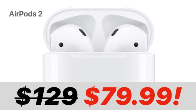 AirPods 2 - $79.99 ($49.01 off) AirPods 2 maintain the iconic design of the original AirPods with the addition of the H1 chip, which improves connectivity and offers hands-free "Hey Siri" functionality. They provide up to 5 hours of listening time on a single charge and come with a standard or wireless charging case. These earbuds ensure a seamless, reliable audio experience with all Apple devices.