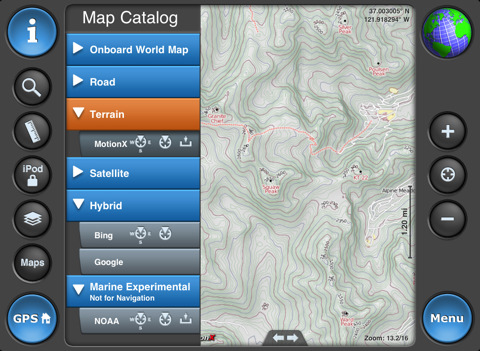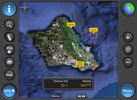 _______________________________________ FAST ONBOARD MotionX MAPS! ✔ Add free onboard maps like you can add books to a book reader. ✔ See your position and tracks anywhere in the world on fast live MotionX open topographic and road maps. ✔ MotionX terrain and road maps can be stored onboard for offline access and lightning fast rendering. Worldwide use and no data fees! ✔ Option for Course-up maps and Direction-up maps, integrated with the digital compass. ✔ Experimental NOAA maps for U.S. marine areas can be downloaded and stored onboard. ✔ Includes an onboard base map of the world. ✔ Google and Bing Road, Satellite and Hybrid maps. ✔ Total of ten map types to choose from. No other app offers a bigger selection of maps! _______________________________________ WAYPOINTS! ✔ Save personal waypoints for favorite locations like your home, end of a hike, geocache location, or your favorite restaurant. ✔ Use the MotionX TapTap® tool for easy waypoint creation. ✔ Geocoding capability converts any location to the closest known physical address. ✔ View coordinates in UTM, MGRS, DMS, DM or D format. _______________________________________ LIVE NAVIGATION! ✔ iPad magnetic compass integration. ✔ Use the compass for orientation in True or Magnetic bearings. ✔ While navigating to a waypoint, visualize your progress and ETA. ✔ Use the distance tool to find the distance and bearing between any two points on the map. _______________________________________ MORE! ✔ Search for landmarks, cities, countries, street addresses, or lat/lon using a freeform search tool. ✔ Access and control your iPod music directly. ✔ Works hand-in-hand with MotionX-GPS, the leading GPS solution for the iPhone with over 3 million happy users.