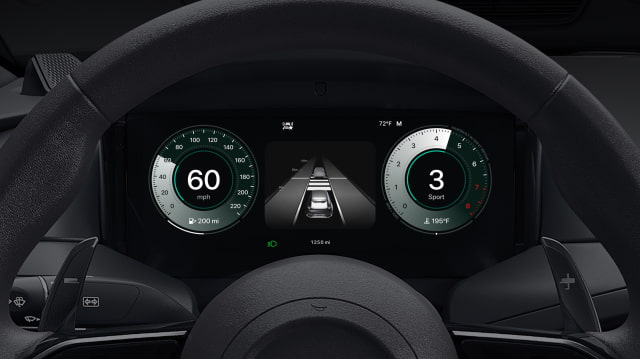 CarPlay Ultra provides content for all the driver's screens, including the instrument cluster, with dynamic and beautiful options for the speedometer, tachometer, fuel gauge, temperature gauge, and more, bringing a consistent look and feel to the entire driving experience. Drivers can choose to show information from their iPhone, like maps and media, along with information that comes from the car, such as advanced driver assistance systems and tire pressure, right in the instrument cluster.