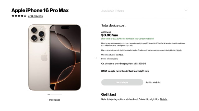 The offer removes the $1,199.99 retail price of an iPhone 16 Pro Max. To qualify for the deal, customers must activate a new line of service on Verizon's network; this can apply to both new and existing Verizon subscribers.