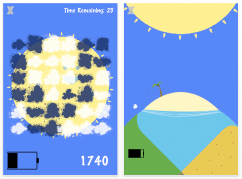 At its core, the game's concept has an environmental angle. Gray clouds have covered the sky and prevented the sunlight from breaking through. Slowly, all the beauty and life is fading from The Earth. In order to complete each level, players must swipe away clouds to reveal the sun behind. By collecting sunlight (kilowatts) players help replenish and re-grow the beauty and vitality of four distinct climates of Earth.