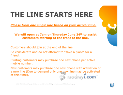 A leaked AT&T sign reveals that doors will open at 7am on Thursday June 24th to accommodate sales of the new iPhone.