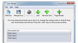 With Doc Merge, the user simply drags their Word documents into the Doc Merge window, chooses to add page breaks or not, and click the Merge Docs button.
